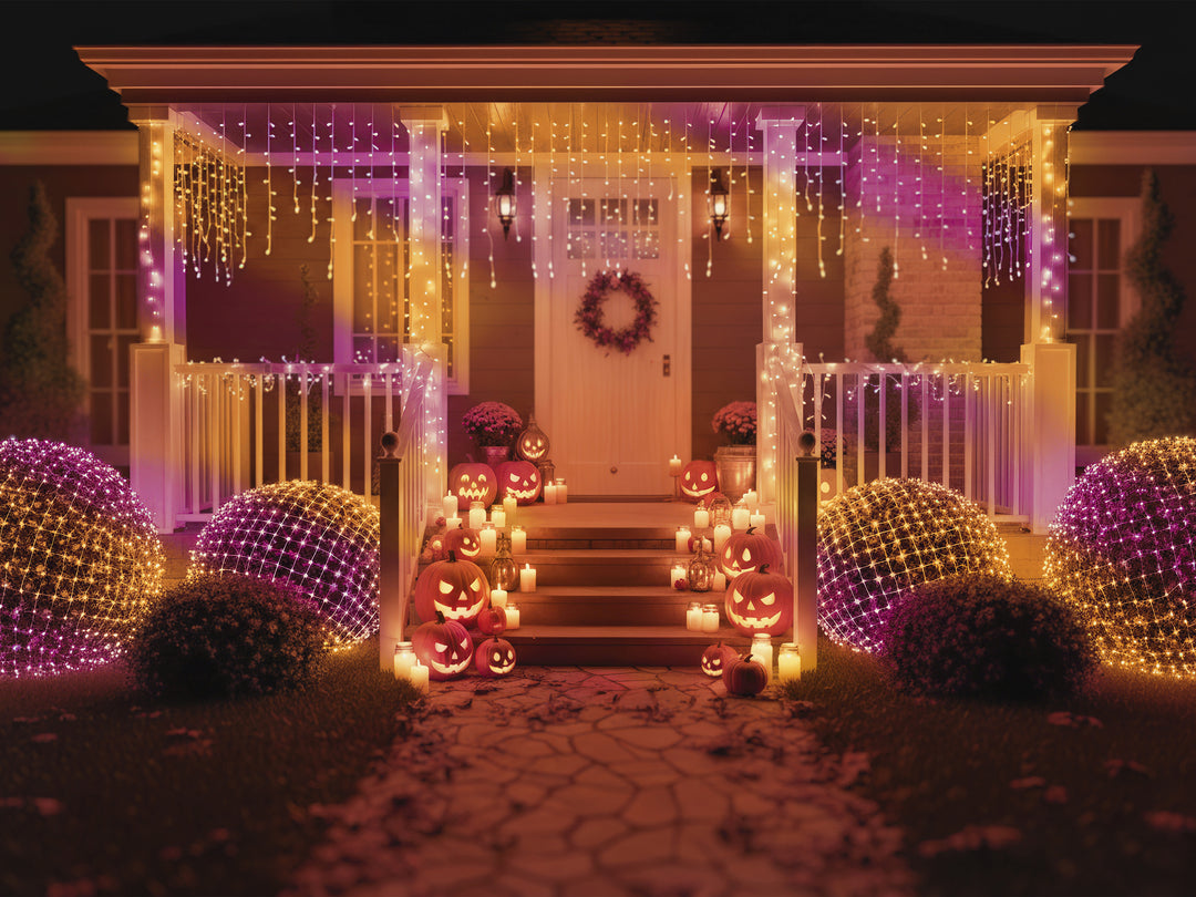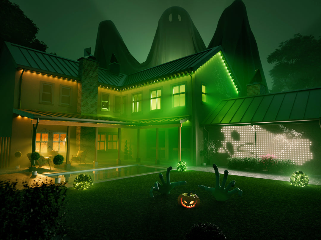 Odkryj magię Halloween z oświetleniem Twinkly! Od ogrodów pełnych grobów po ganki z dyniami i upiorne wnętrza — spraw, by każda przestrzeń rozbłysła dreszczem emocji dzięki spersonalizowanym efektom świetlnym.