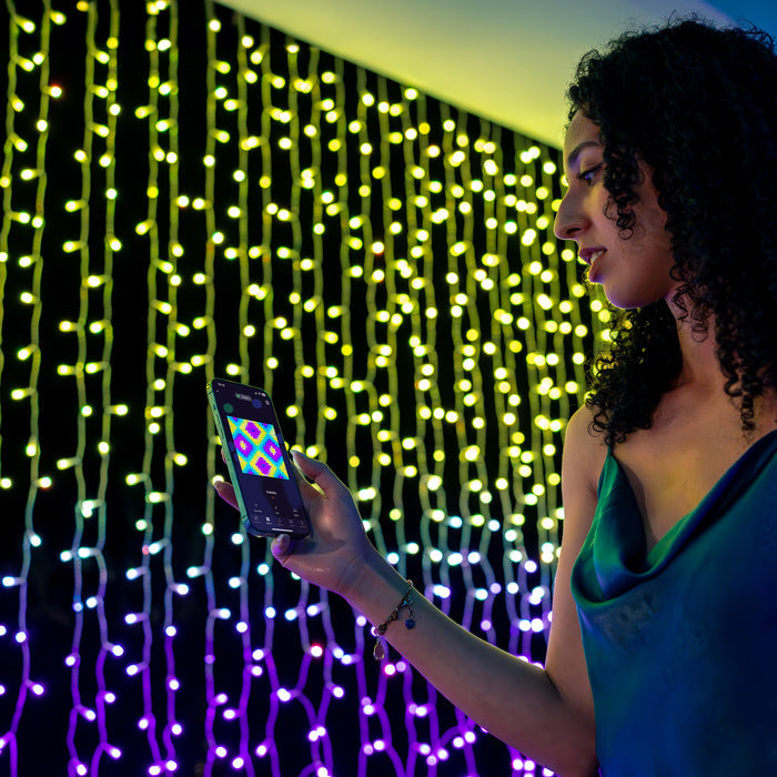 Zgrupuj dowolne lampki Twinkly, aby działały jako jeden wyświetlacz lub odtwarzały zsynchronizowane efekty. Połącz wiele lampek nad tarasem lub zaprogramuj całe podwórko, aby świeciło się jednym niesamowitym efektem.