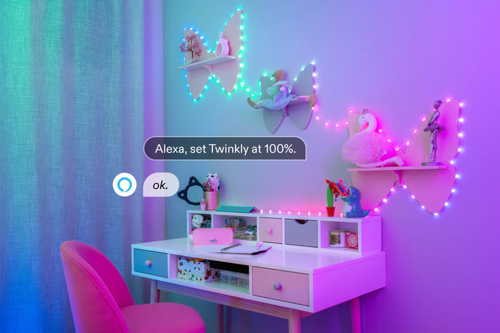Zmień główny schemat kolorów oświetlenia, prosząc swój inteligentny dom o ustawienie Twinkly na kolor żółty, niebieski lub czerwony.
