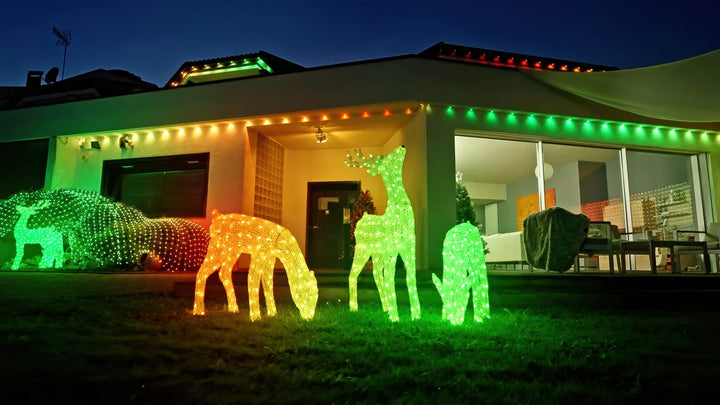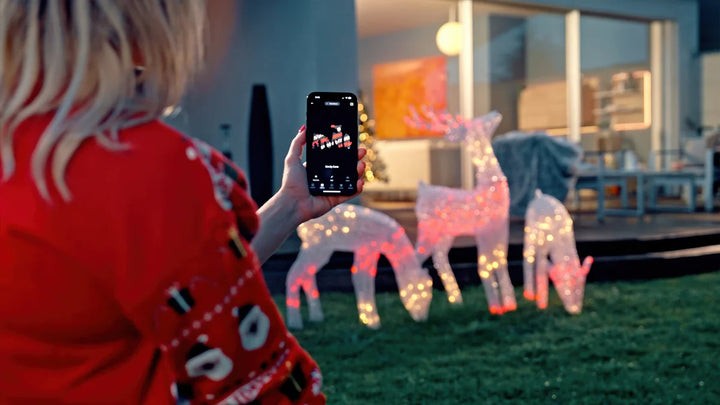 Opowiedz świąteczną historię magii z reniferami Twinkly – figurami LED sterowanymi z aplikacji. Elegancki, trójwymiarowy design przyciąga wzrok i pobudza wyobraźnię, tworząc zachwycającą dekorację zewnętrzną z indywidualnie dopasowanymi animacjami w ponad 16 milionach kolorów.