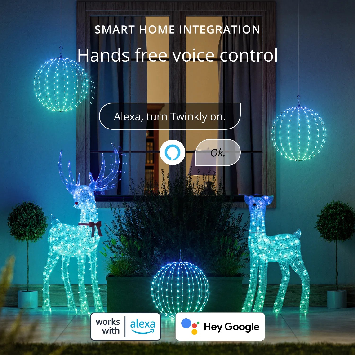 Renifer Twinkly jest kompatybilny z Amazon Alexa i Google Assistant, co umożliwia bezproblemowe sterowanie głosowe.