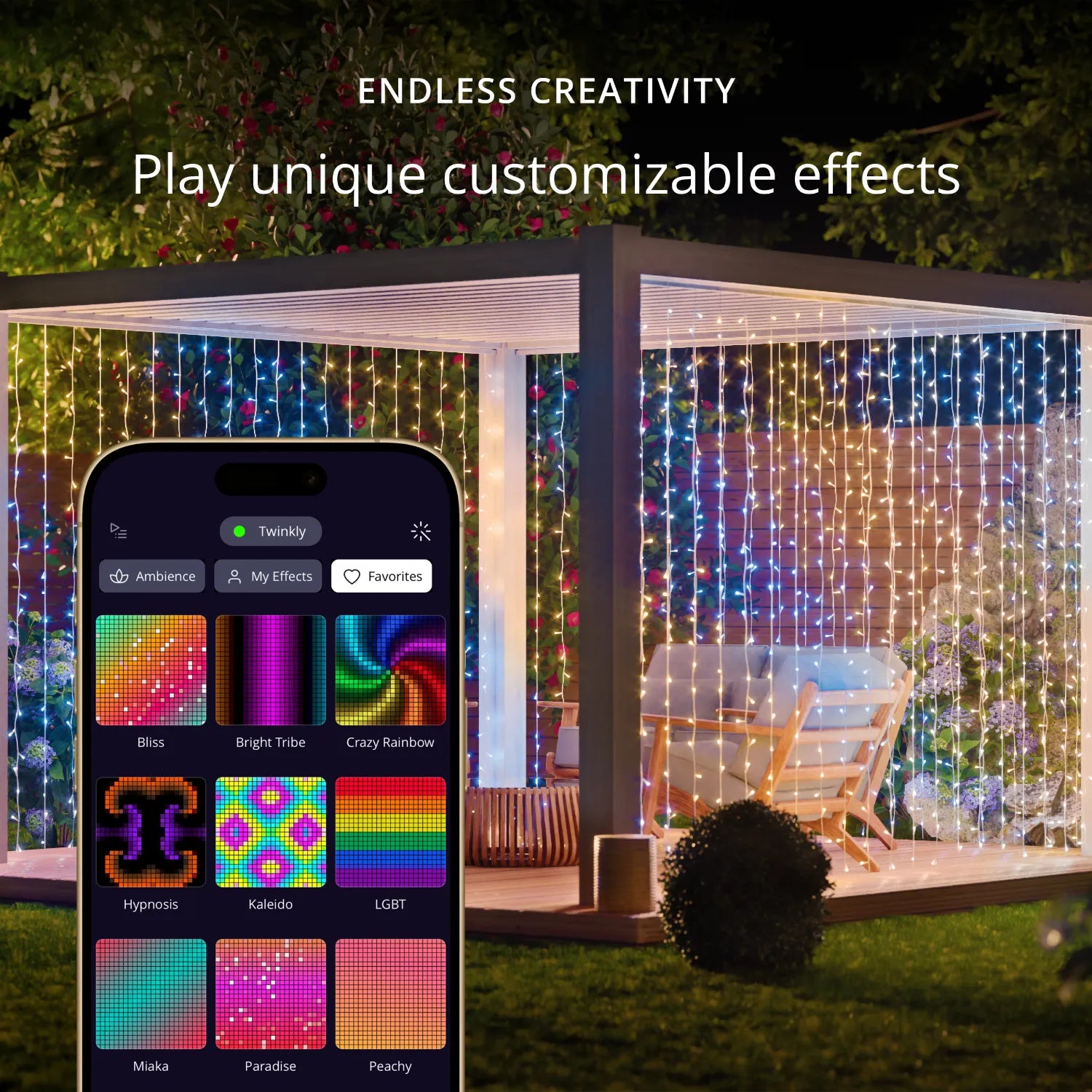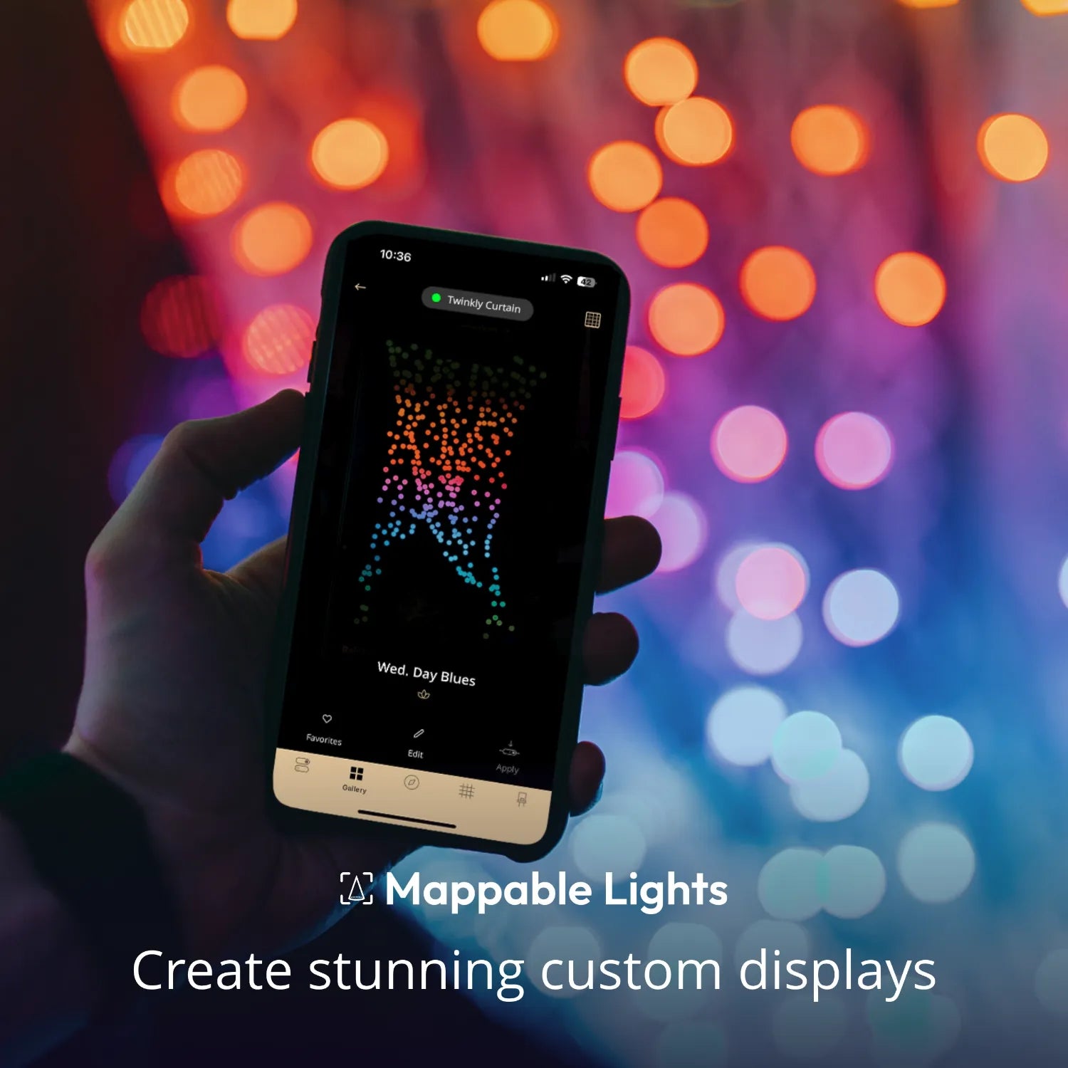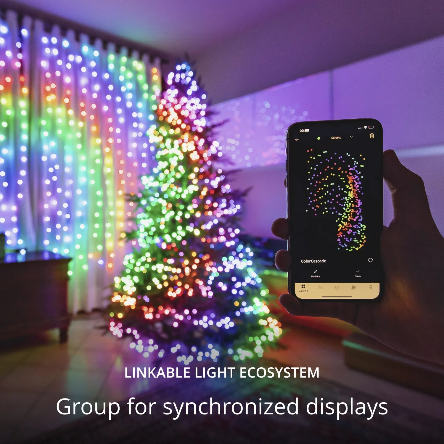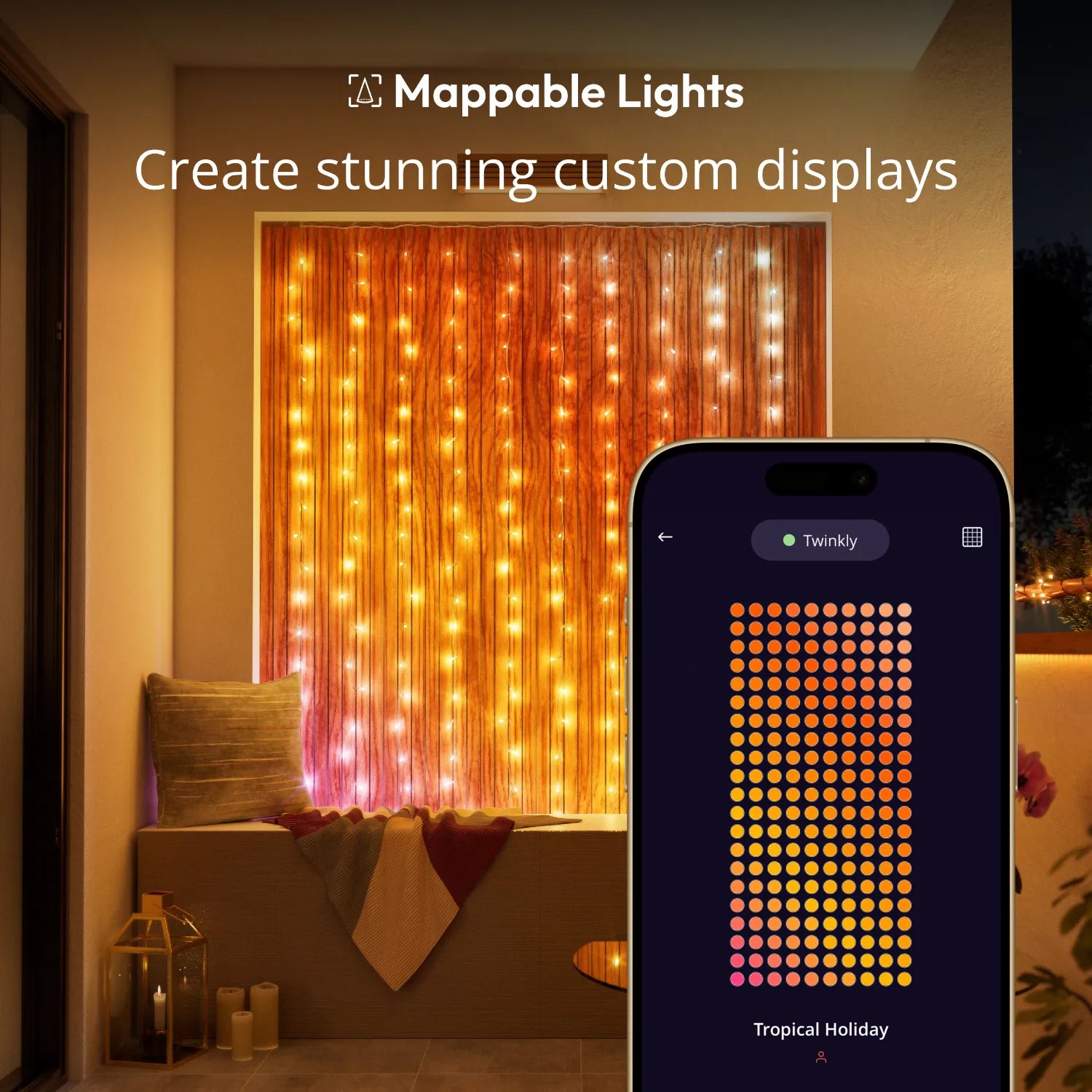 Opatentowana technologia wykorzystuje aparat w smartfonie i aplikację do mapowania położenia każdej diody LED, niezależnie od tego, gdzie zawiesisz lampki. Odtwarzaj nieskończoną liczbę spersonalizowanych efektów i twórz własne, korzystając z palety ponad 16 milionów kolorów, w tym ciepłej bieli.