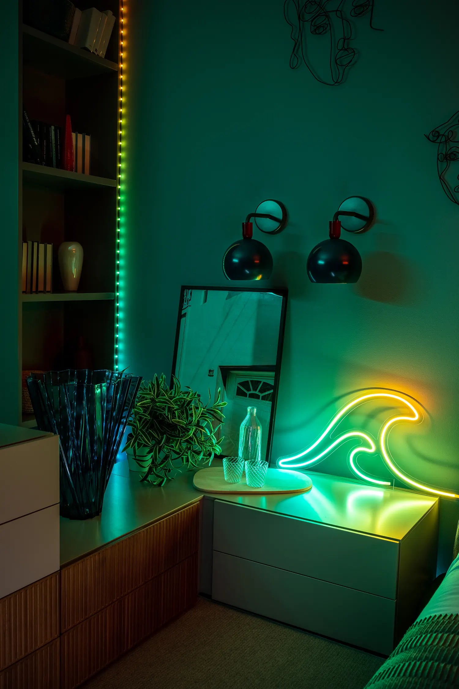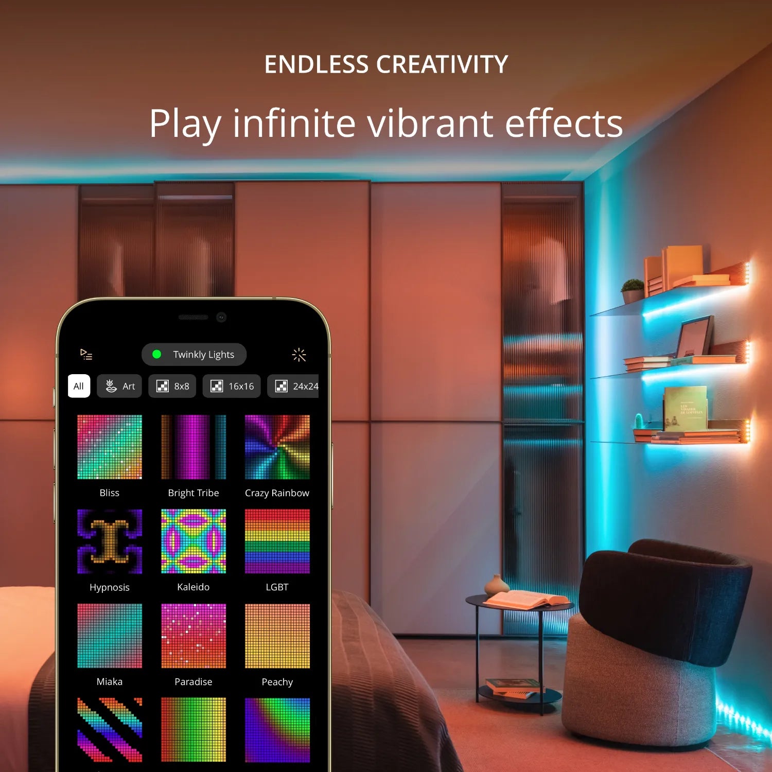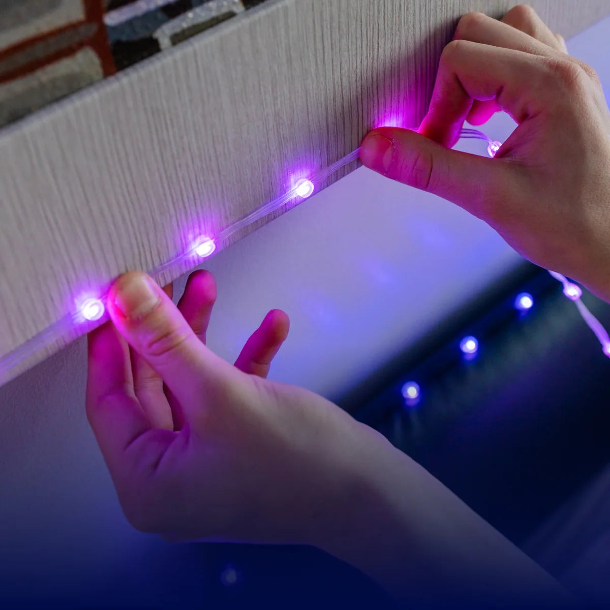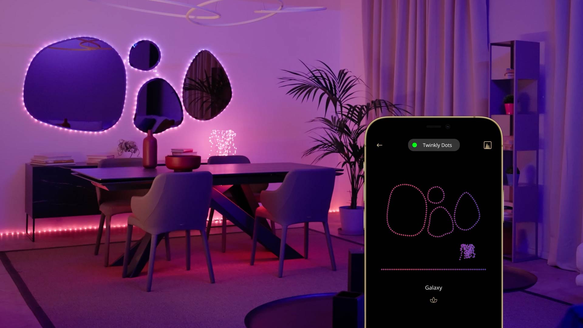 Stwórz wyjątkowy pokaz świetlny z Twinkly Dots – inteligentnymi mini-lampkami LED. Dzięki elastycznemu, transparentnemu przewodowi doskonale sprawdzą się jako dekoracyjne akcenty oraz baza do tworzenia własnych kompozycji świetlnych na ścianie. Technologia mapowania Twinkly daje pełną kontrolę nad każdą diodą LED, niezależnie od tego, jak zostaną rozmieszczone. Możesz odtwarzać, personalizować i tworzyć efekty z palety ponad 16 milionów kolorów. Dots zsynchronizujesz także z grami i połączysz z innymi produktami Twinkly.
