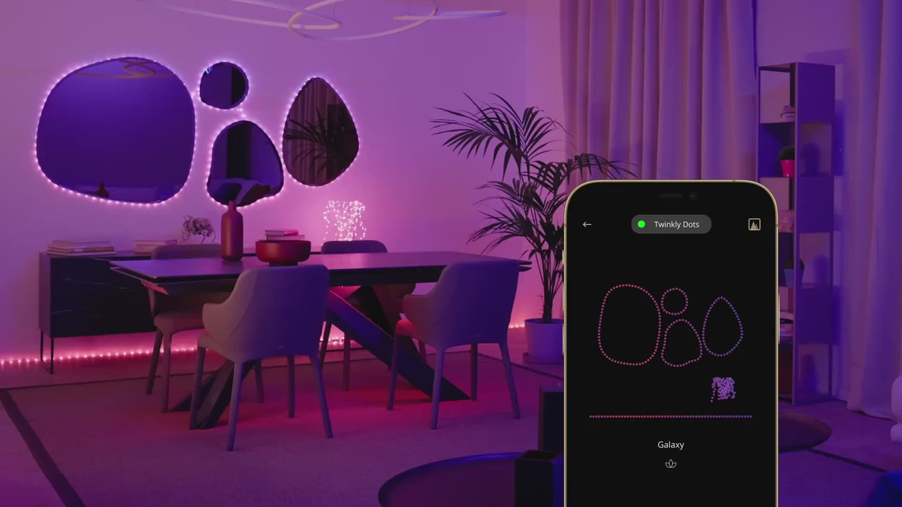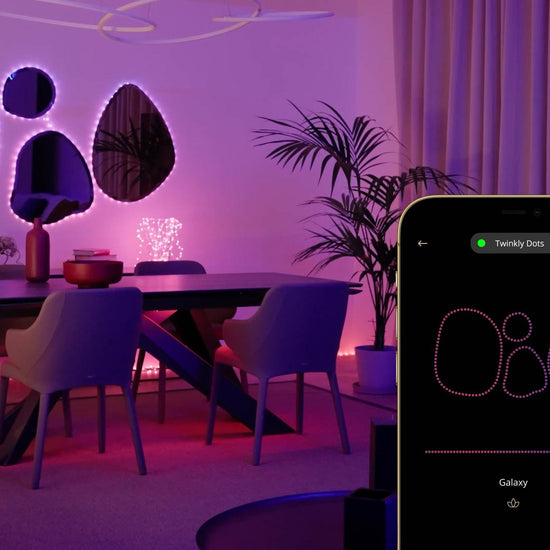 Dots wykorzystują opatentowaną technologię, która korzysta z aparatu w smartfonie i aplikacji do mapowania położenia każdej diody LED, niezależnie od tego, gdzie umieścisz lampki. Odtwarzaj nieskończoną liczbę spersonalizowanych efektów i twórz własne, korzystając z palety ponad 16 milionów kolorów.