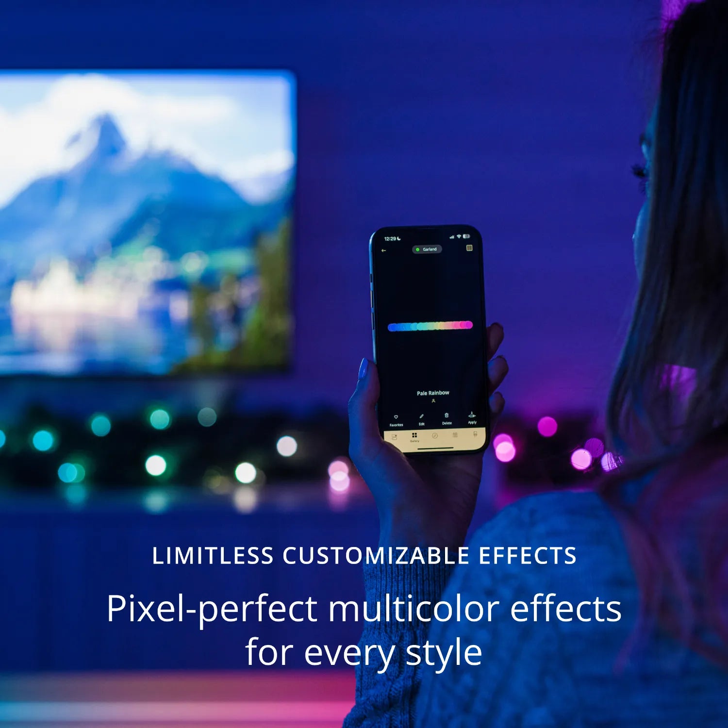 Opatentowana technologia wykorzystuje aparat w smartfonie i aplikację do mapowania położenia każdej diody LED. Odtwarzaj nieskończoną liczbę spersonalizowanych efektów i twórz własne, korzystając z palety ponad 16 milionów kolorów.