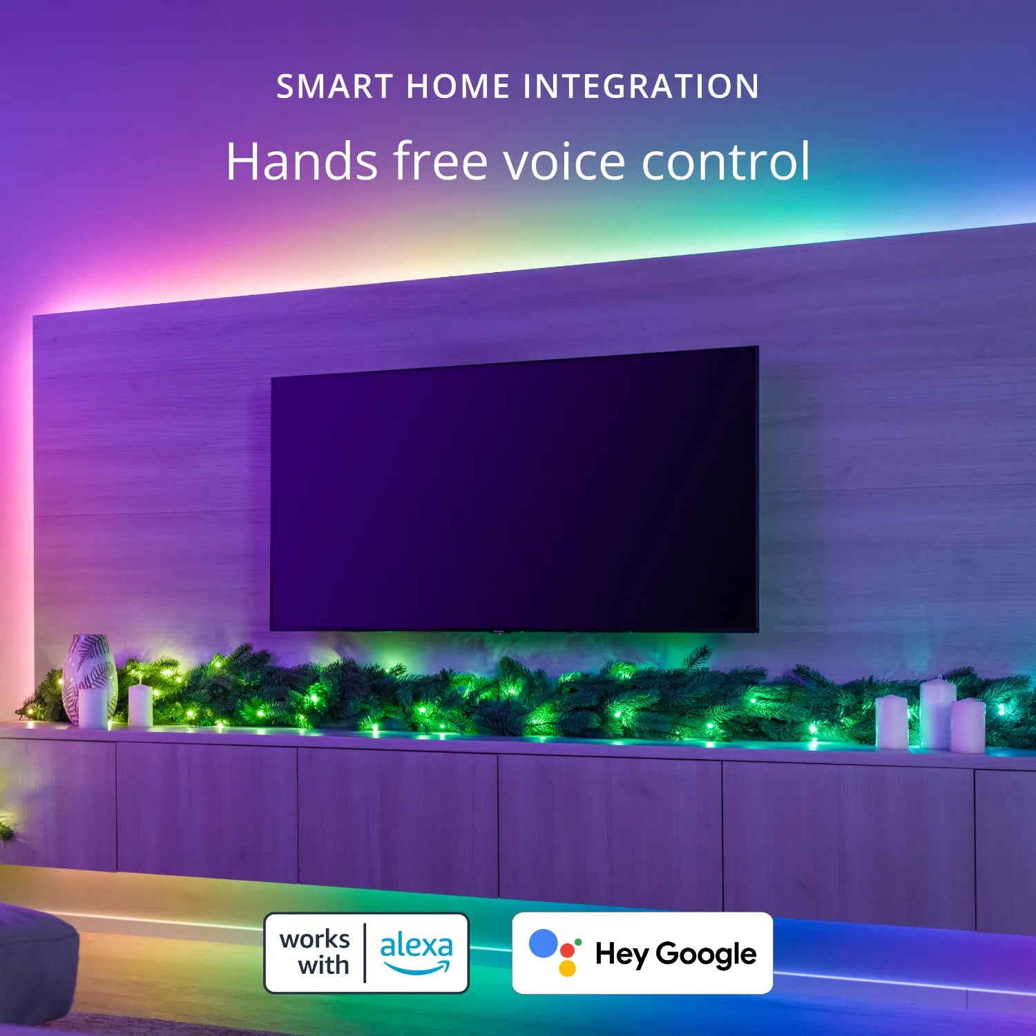 Inteligentne lampki Twinkly są kompatybilne z Amazon Alexa i Google Assistant, dzięki czemu umożliwiają sterowanie głosowe bez użycia rąk.