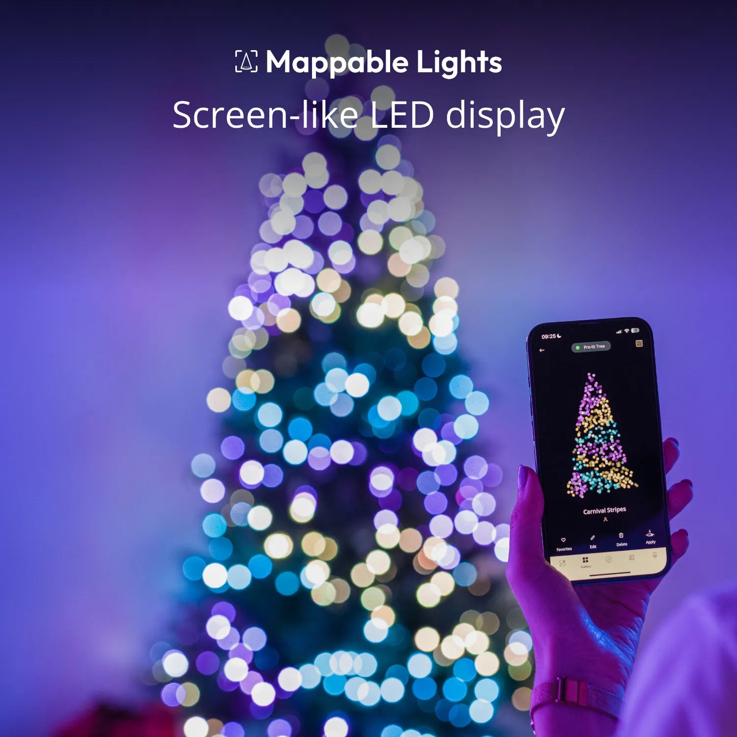 Rozświetl swoje święta jak nigdy dotąd dzięki choince Twinkly Pre-Lit Tree z inteligentnymi diodami LED. Łatwa w złożeniu, realistyczna i wykonana z wysokiej jakości materiałów, dostępna jest w różnych rozmiarach – wszystkie modele wyposażono w sterowane aplikacją lampki LED, które zachwycają niezwykłą intensywnością barw w ponad 16 milionach kolorów.