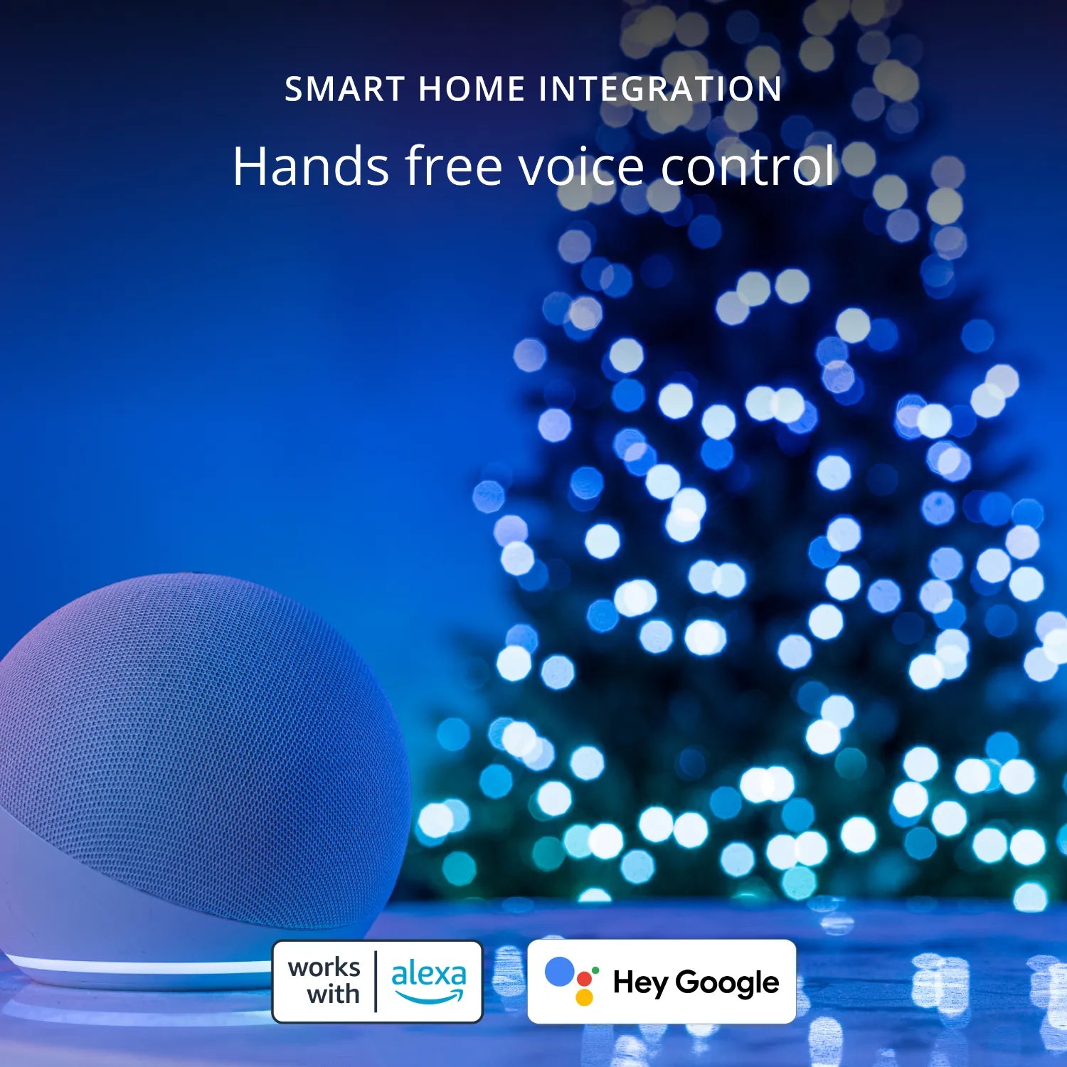 Inteligentne lampki Twinkly są kompatybilne z Amazon Alexa i Google Assistant, dzięki czemu umożliwiają sterowanie głosowe bez użycia rąk.