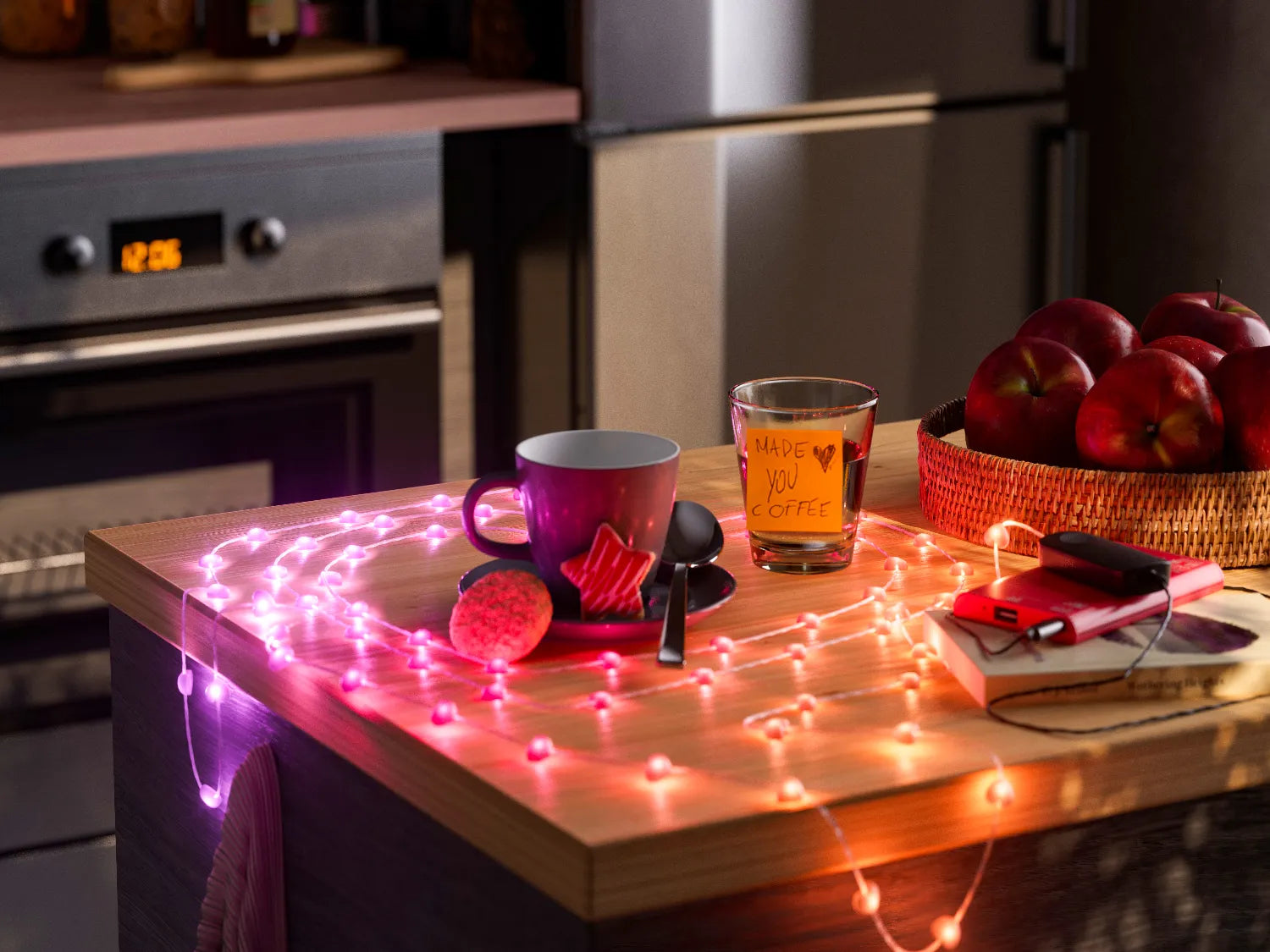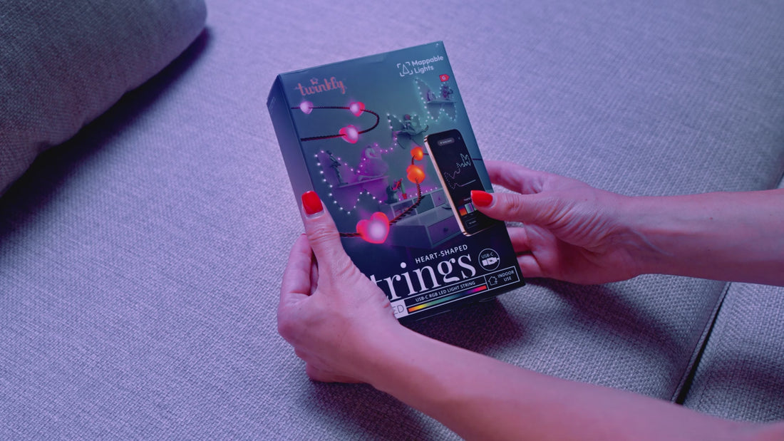 Strings USB-C zapewniają maksymalną mobilność dzięki lekkiej konstrukcji i zasilaniu przez USB-C. Lampki w kształcie serca dodają dekoracjom ciepła i tworzą nastrój dzięki spersonalizowanym efektom ambientowym.
